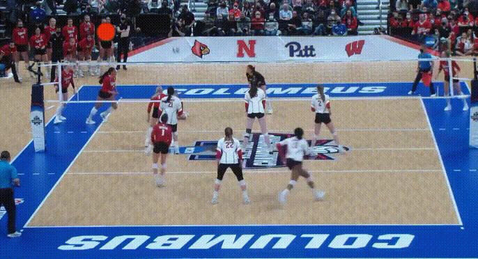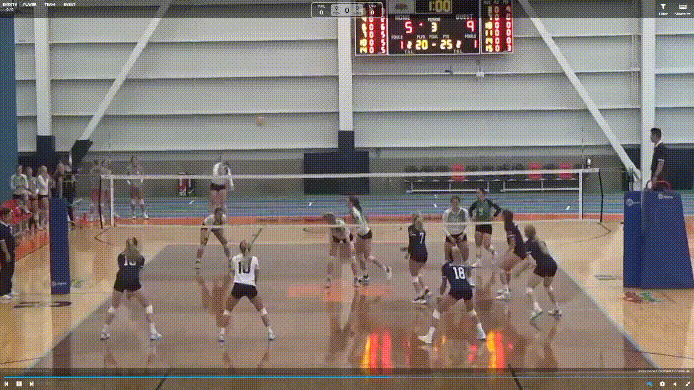 I loved the way that 2021 Nebraska ran Caffey on these pushes. She gets pinned a little by a dropping serve to zone 1, but it actually ends up forcing her to have a ton of right-to-left motion here which is really tough to stop.
