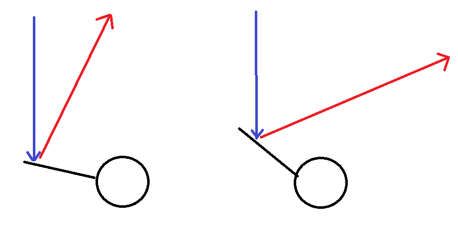 The angle of reflection dictates how far the ball goes laterally. Let’s use accurate biomechanics drawings to illustrate this: